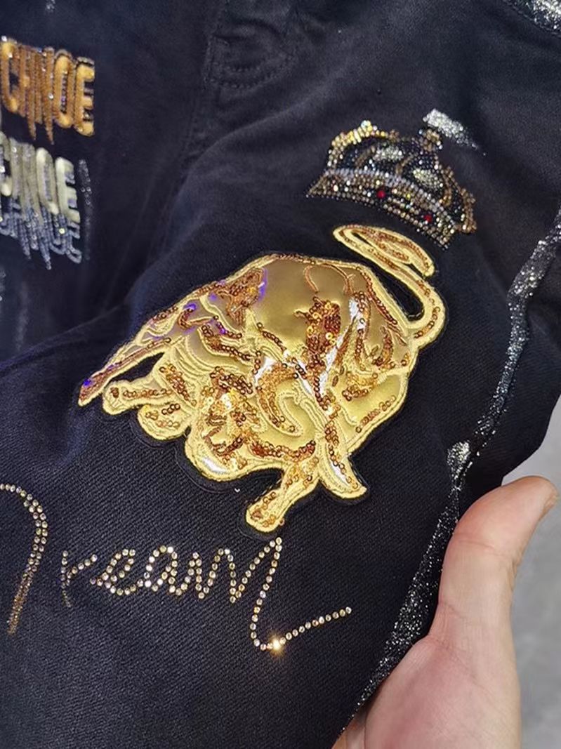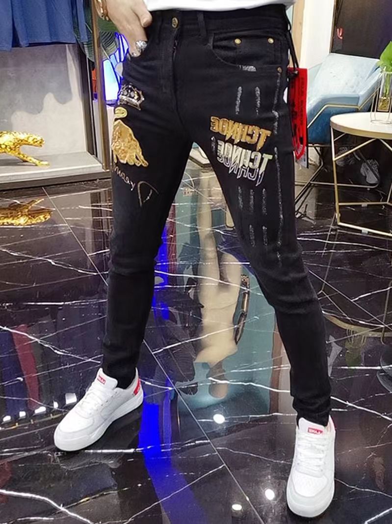 Elevate Your Style with Bold EmbroideryStep into the spotlight with YIJINLAN's custom jeans, where bold Big Bull embroidery meets plush velvet lining for a luxurious winter essential. These streetwear jeans are crafted for the fashion-forward man who values both style and comfort. The intricate embroidery not only adds a unique flair but also makes a statement, ensuring you stand out in any crowd. The velvet lining provides an extra layer of warmth, making these jeans perfect for colder months. Whether you're heading to a casual outing or a night out, these jeans are your go-to choice for a stylish ensemble. Pair them with a sleek jacket and boots for a complete look that exudes confidence and sophistication.