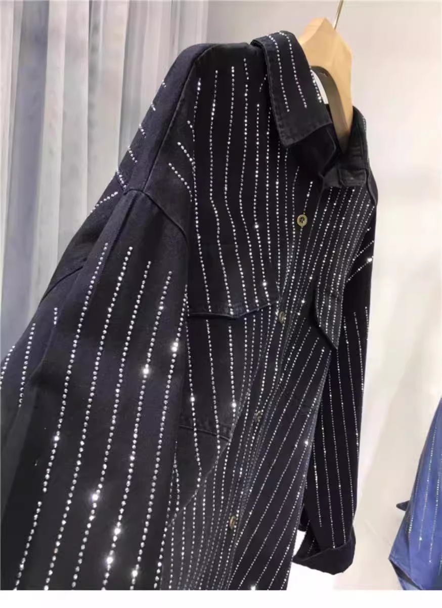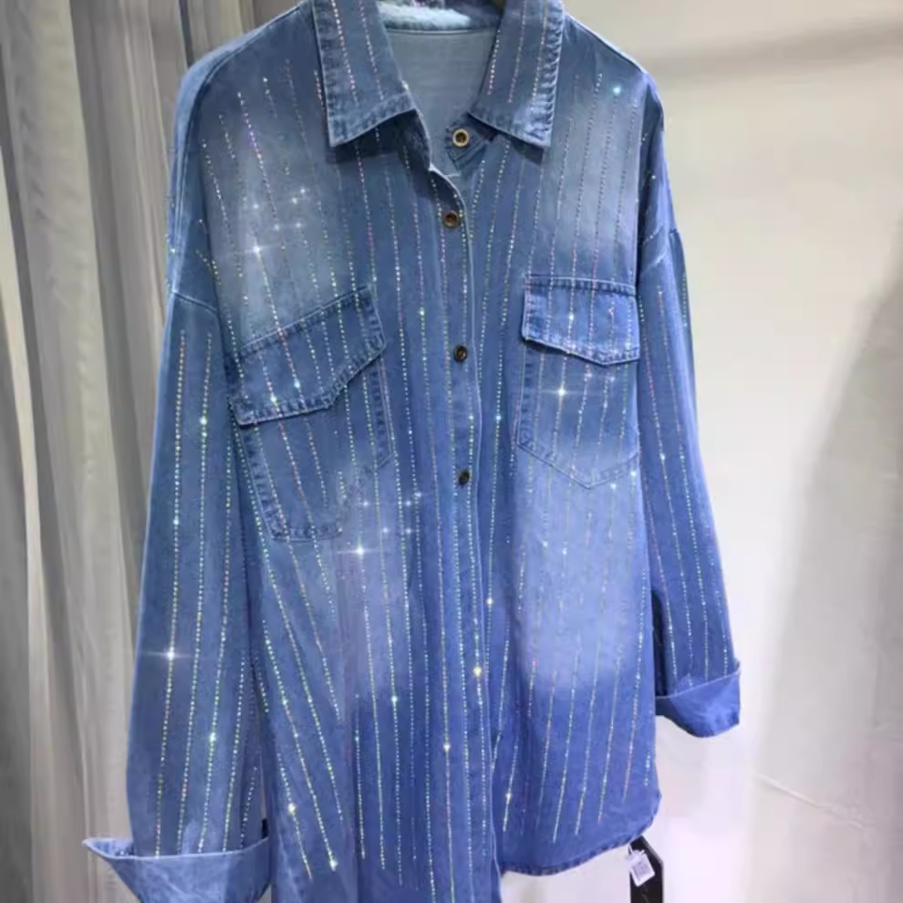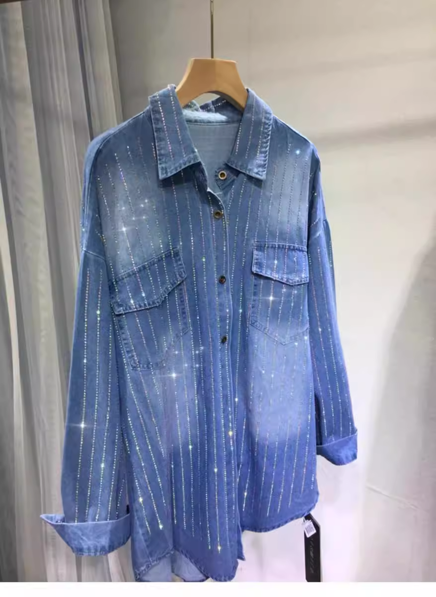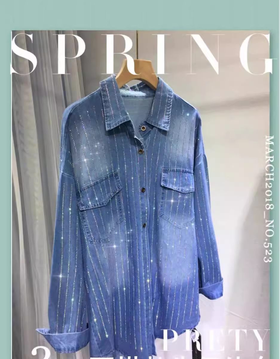 | Item Name | Heavy Embellishment Rhinestone Design Niche Denim Shirt Women's Loose Fit Layering Trendy Blouse |