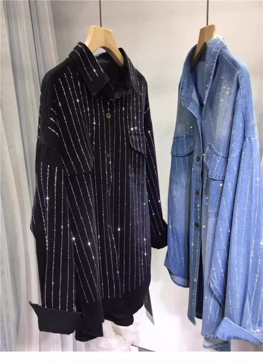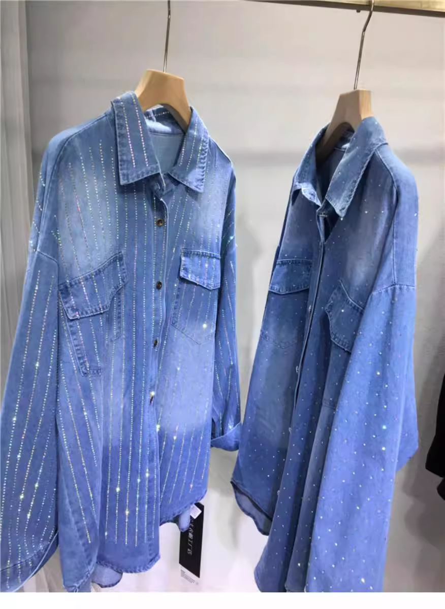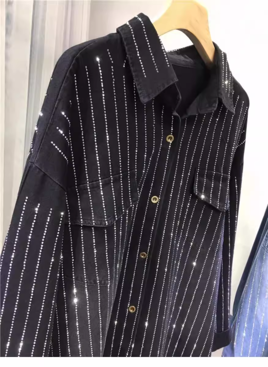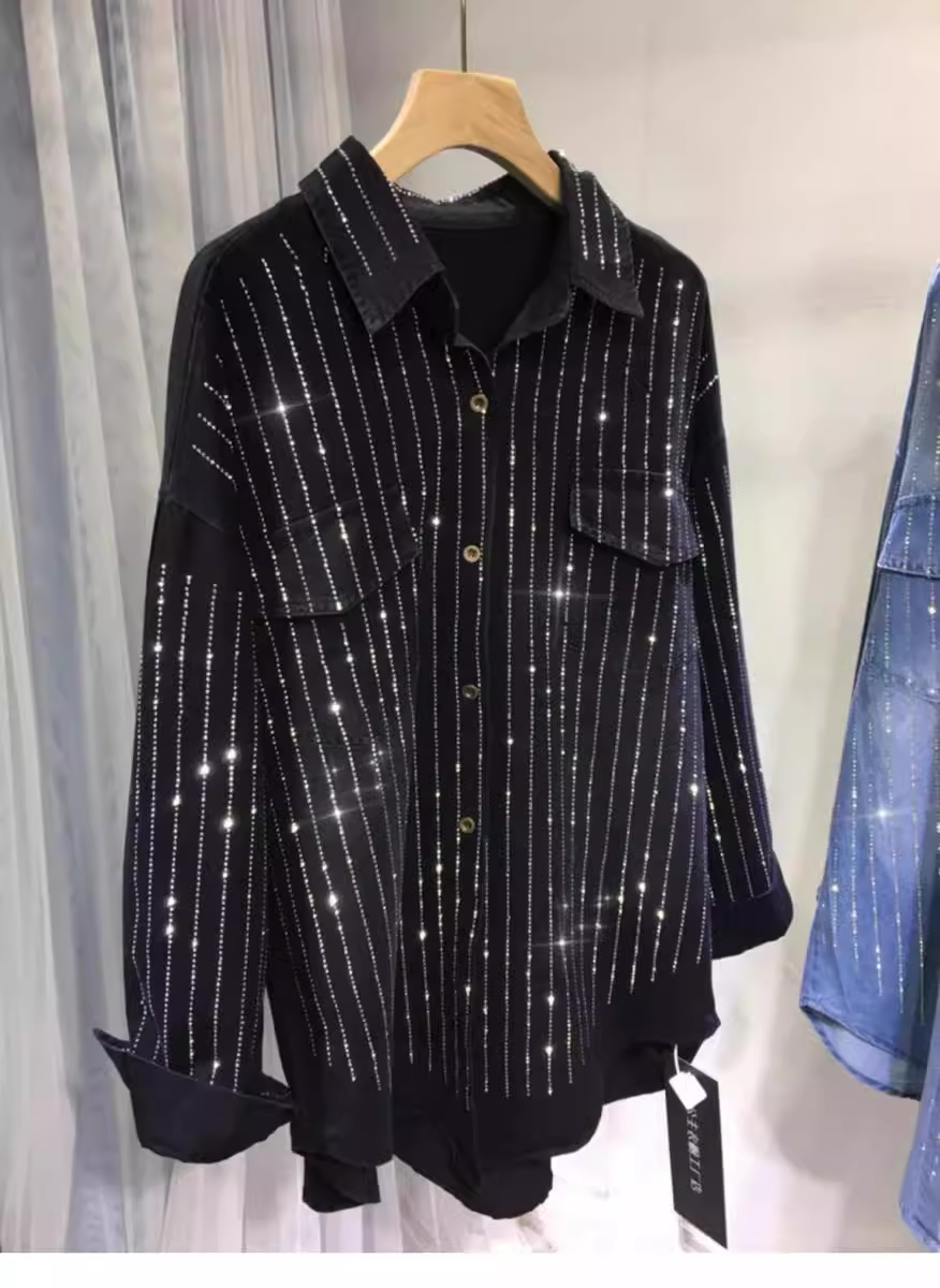 | Item Name | Heavy Embellishment Rhinestone Design Niche Denim Shirt Women's Loose Fit Layering Trendy Blouse |