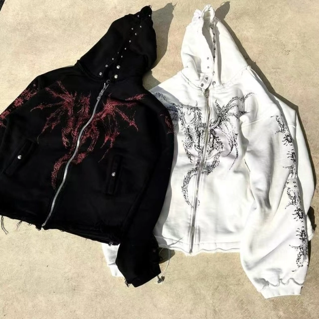 | Item Name | Star Moon Keel Devil Print rivet distressed hooded street style casual cardigan trendy jacket |