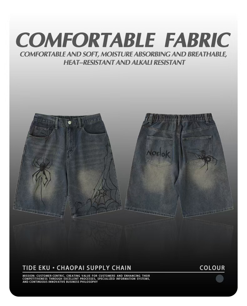 **#StreetwearShorts #SpiderDenim #VintageWash #SkaterFashion #OversizedFit**